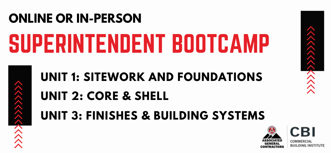 The Superintendent Bootcamp is tailored to enhance the knowledge base of construction professionals aspiring to advance their careers. This course is perfect for field and project engineers, forepersons, assistant superintendents and anyone eager to acquire an in-depth knowledge of the commercial construction process. These sessions offer an intensive exploration of constructing a project from inception to completion.