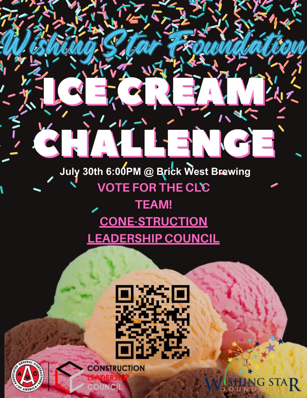 The CLC is competing in the “Scoop There It Is” Ice Cream Eating Contest and we need your support! Join us at Brick West Brewing on July 30th at 6:00 PM for a night of laughs, friendly competition, and a whole lot of ice cream! All benefiting the Wishing Star Foundation. Cheer on the “Cone-struction Leadership Council” as we devour our way to victory, and don’t forget to cast your vote to help us bring home the trophy! 👉 Vote here: https://wishingstar.org/scoop-there-it-is/ Let’s make this a sweet win, for us and the kids!